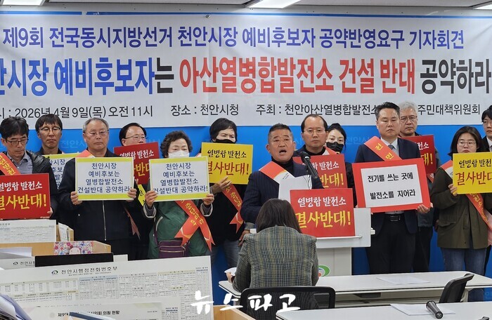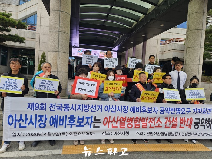 [뉴스파고=한광수 기자] 아산환경운동연합은 지난 9일 오전, 아산시청과 천안시청에서 각각 기자회견을 열고 제9회 전국동시지방선거에 출마한 아산·천안시장 예비후보자들을 대상으로 진행한 ‘아산 열병합발전소 건설 반대’ 공약 수용 여부 질의 결과를 발표했다.