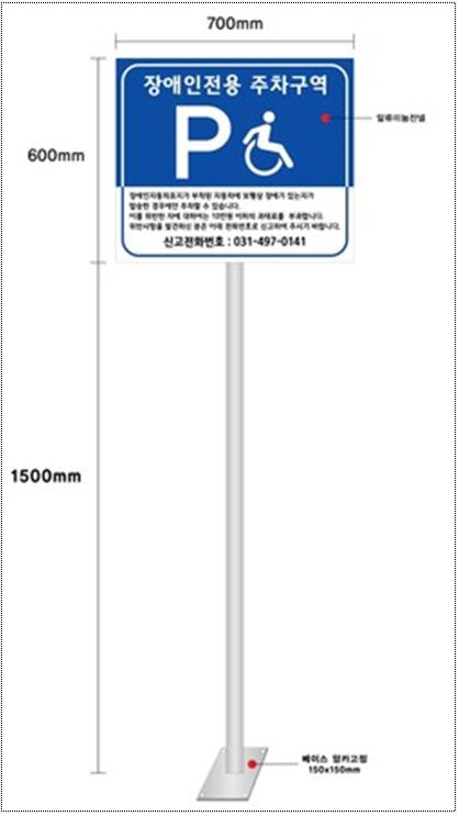 안내표지판의 규격은 가로 0.7m, 세로 0.6m, 높이 1.5m(지면에서 표지판까지)이며,