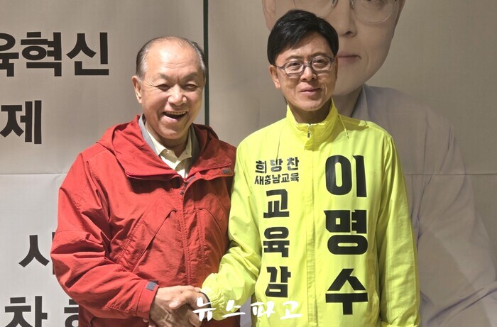 이어 이 후보를 향해 "그런면에서 본인이 인정하는 최고의 충남 교육감 적임자라고 인정했다"며 두터운 신뢰를 보였다.