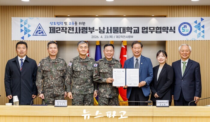 남서울대는 30일 제2작전사령부와 국방 AI 협력체계 구축을 위한 업무협약을 맺었다. 단순한 상호 교류를 넘어 군과 대학이 머리를 맞대고 교육과 연구, 기술 실증을 함께 수행하는 실효성 있는 모델을 만드는 것이 이번 협약의 핵심이다.