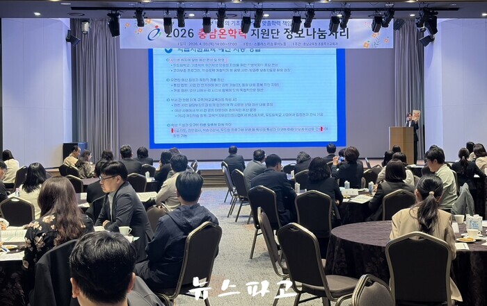 도교육청은 30일 예산 스플라스 리솜에서 지역 교육지원청 관계자와 충남온학력지원단 등 120여 명이 모인 가운데 ‘2026학년도 충남온학력 지원단 정보나눔자리’를 열었다.