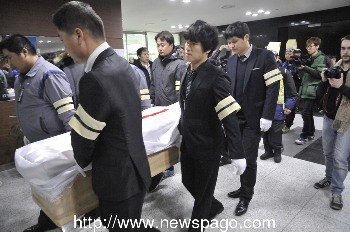 성탄절을 하루 앞둔 24일 오전 8시가 조금 넘은 시간, 천안의료원 장례식장에서는 지난 10월 31일 삼성전자서비스의 탄압으로 목숨을 끊은 고 이종범씨의 발인제가 열렸다. 장례식은 사고 후, 50일이 지난 20일 저녁 사측과 협상이 타결된데 따른 것으로, 10시 30분 삼성서비스 천안두정센터에서 영결식을 가진 뒤, 오후 1시 30분 서울 서초동 삼성본사에서 노제를 거쳐, 경기도 남양주시 마석 모란공원묘역에 고인을 안치할 예정이다.