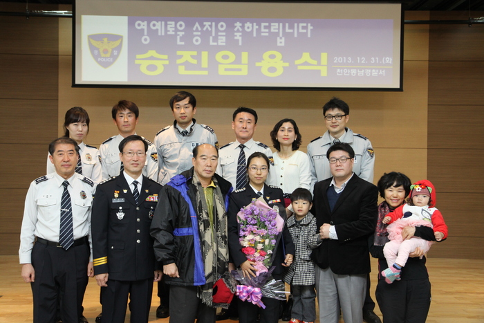 충남 천안동남경찰서(서장 박근순)는 31일 동남경찰서 대회의실에서 각 과장, 축하직원, 승진임용 대상자 가족들이 참석한 가운데 연말정기표창수여 및 승진임용식을 실시했다.