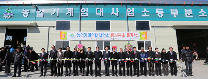 서산시는 지난 4일 운산면 거성리 일원에서 이완섭 시장을 비롯해 기관・단체장, 지역 농업인 등 350명이 참석한 가운데 ‘농업기계 임대사업소 동부분소’ 준공식을 열었다. 이날 준공된 동부분소는 13억원의 사업비를 들여 3천 733㎡의 부지에 건축면적 702㎡ 규모로 건립됐다. 농업인들이 많이 사용하는 논두렁조성기, 땅속작물수확기, 콩 탈곡기 등 27종 151대의 농기계를 갖췄다. 이완섭 시장은 “농기계임대사업소 동부분소 설치로 운산면을 비롯한 동부지역 농민들이 보다 빠르고 편리하게 농기계를 이용할 수 있을 것"이라며, “올해 팔봉과 지곡, 성연지역 농민들을 위한 중부분소를 추가로 설치할 계획”이라고 말했다. 농기계 임대사업소 권역별 분소는 이 시장의 공약사항의 하나로 원거리 농민들이 값비싼 농기계를 쉽게 빌려 쓸 수 있도록 하기 위해 추진됐다. 앞서 시는 지난해 12월 대산읍 대산리 일원에 24종 160대의 농기계를 갖춘 북부분소를 개소했다. 올해 중부분소까지 개소하면 서산시는 4개의 임대사업소에 70종 870대의 농기계를 보유한 전국 최대 규모의 농기계 임대사업을 운영하게 된다. <저작권자 ⓒ 뉴스파고 무단전재 및 재배포 금지>