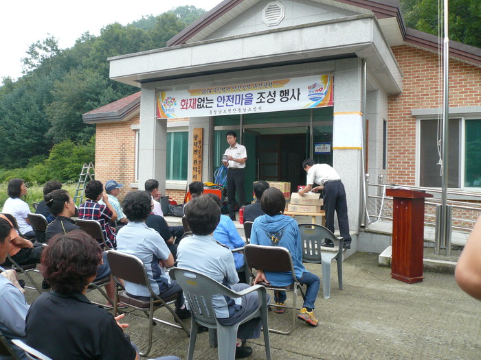마을대표 명예소방관 위촉에 이어 마을에 고압동력펌프 및 소화기 기증과 마을회관에 화재없는 안전마을 현판을 부착했다.