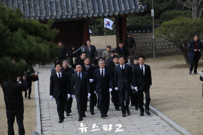 새정치민주연합 문재인 대표는 1일 96주년 3.1절을 맞아 충남 천안시 병천면 유관순 열사 기념관과 목천읍의 이동녕생가 및 병천면 구제역 현장을 방문한 자리에서 세종문화회관에서의 행사는 형식적이라고 비판했다.