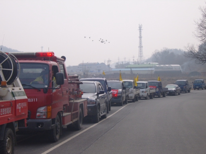 | ▲ 세종시 전동면은 14일 오전 전동면 남·녀 의용소방대와 전동면 직원 등 60여 명이 운주산 주변에서 산불예방 차량 가두 캠페인을 진행한다./사진은 지난해 산불예방 캠페인 모습. © 뉴스파고 |