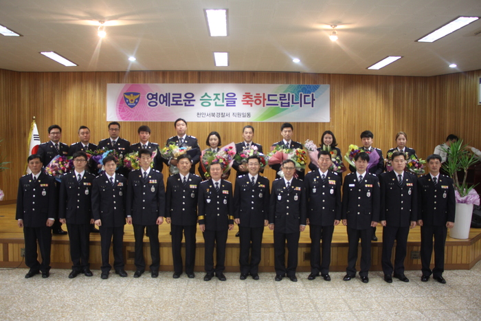 천안서북경찰서(서장 이한일)은 31일(화) 09:00, 경찰서 4층 어울림마당에서 승진자 22명에 대한 승진임용식을 가졌다.