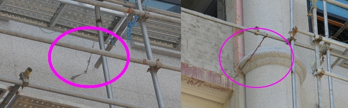 | ▲ 비계를 벽에 고정시켜주는 역할을 하는 '벽이음(원)'을 비계보다 먼저 해체한 것이 사고의 원인으로 밝혀졌다. © 뉴스파고 |